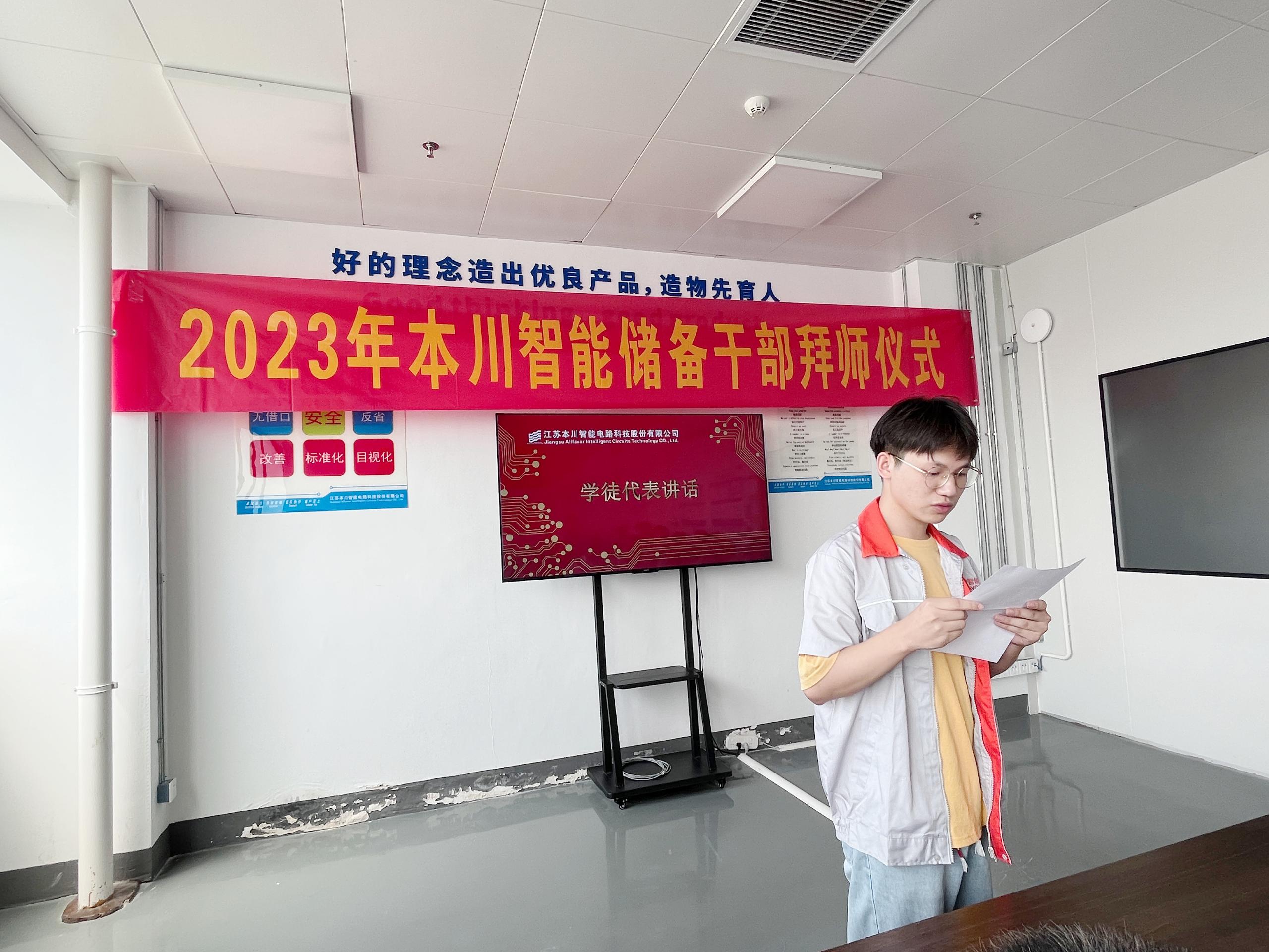 为了让每一位管培生感受到来自本川智能的用心关怀和培养,公司为2023届管培生举办了隆重的拜师仪式。来自生产部、质量部、技术部、工程部、市场部、精益办的各位导师及2023届管培生近30人,在谢旭文总经理、人事行政总监杨晓晖女士的见证下,正式结为师徒。